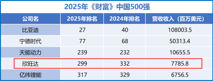 这份耀眼的成绩,也直接推动欣旺达再度登上《财富》中国500强榜单,且排名一举超过亿纬锂能(维权),稳稳地站在了第299位,实现了从丑小鸭到白天鹅的华丽蜕变。