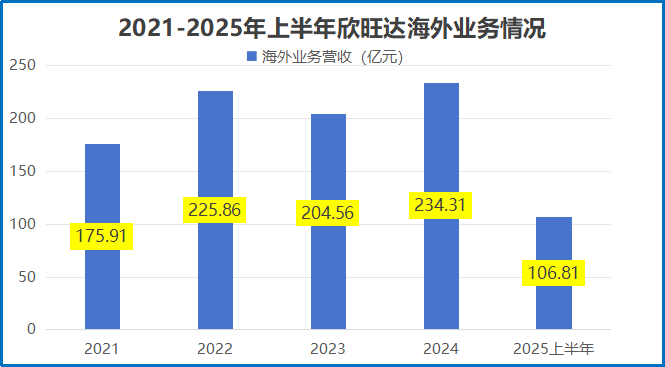 2025年上半年的营收数据,恰恰印证了这一策略的初步成效:欣旺达当期总营收269.85 亿元,其中海外营收就达到了106.81亿元,占比近四成。